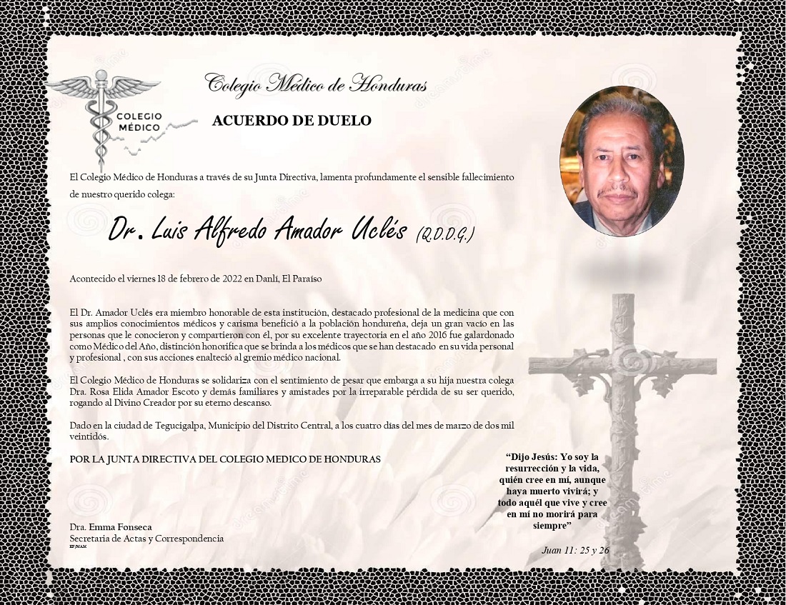 Obituario Dr. Luis Alfredo Amador Uclés (Q.D.D.G.)