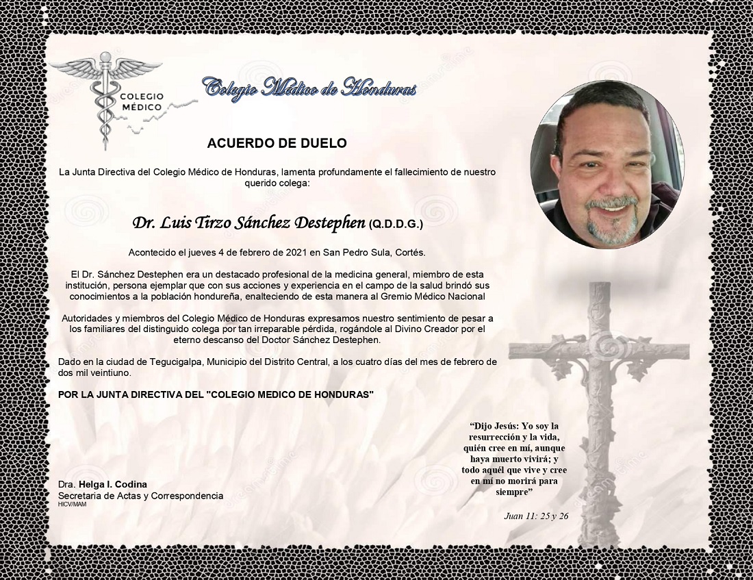 Obituario Dr. Luis Tirzo Sánchez Destephen (Q.D.D.G.)