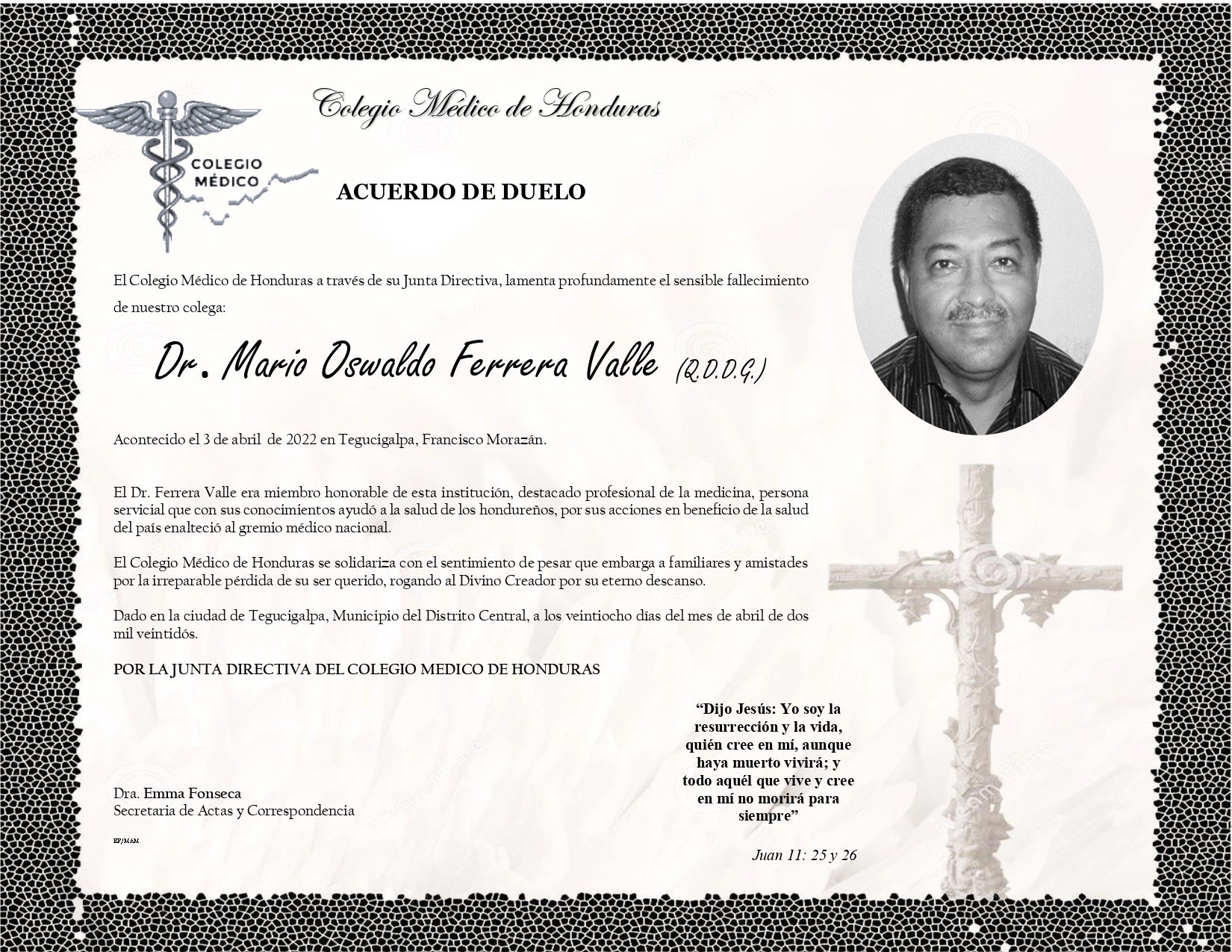 Obituario Dr. Mario Oswaldo Ferrera Valle (Q.D.D.G.)