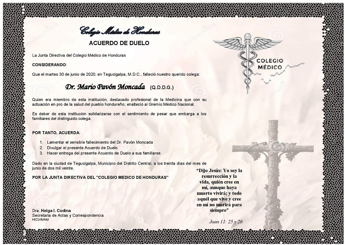 Obituario Dr. Mario Pavón Moncada