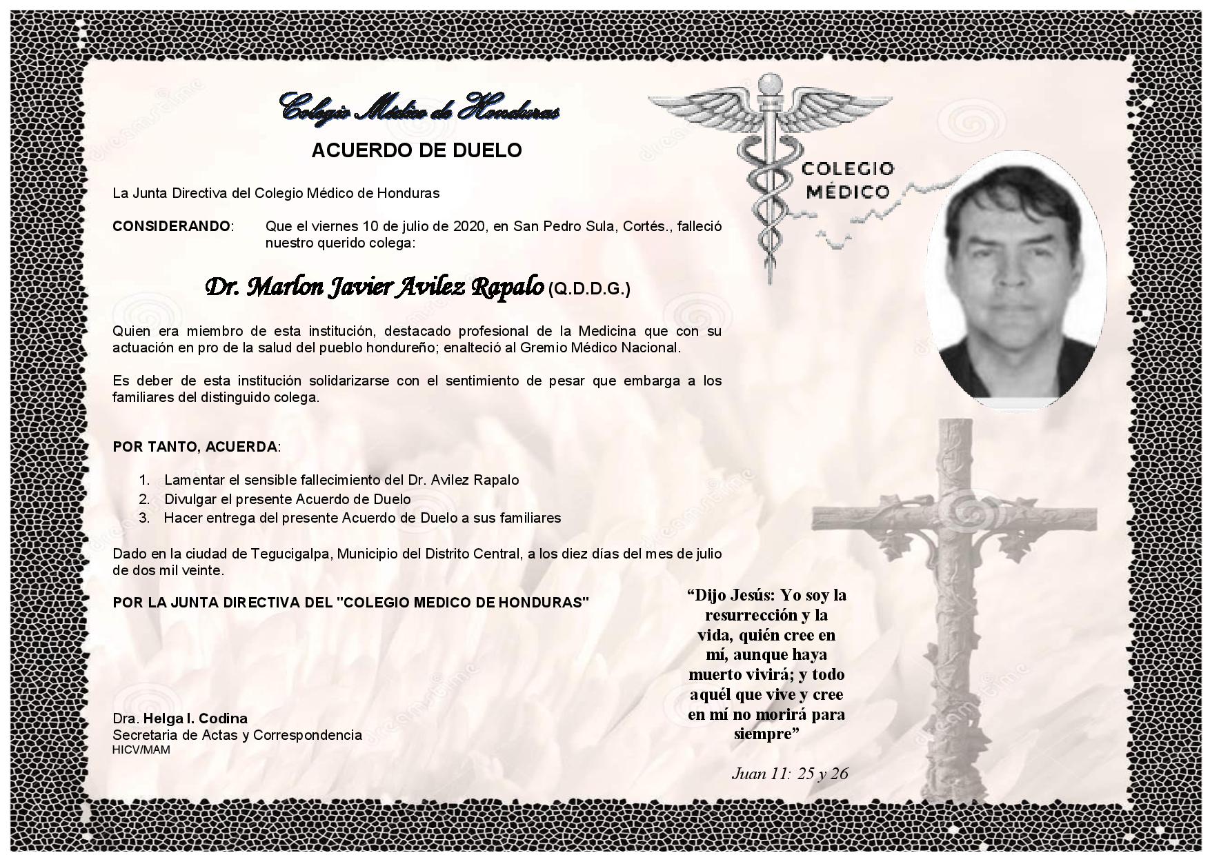 Obituario Dr. Marlon Javier Avilez Rapalo
