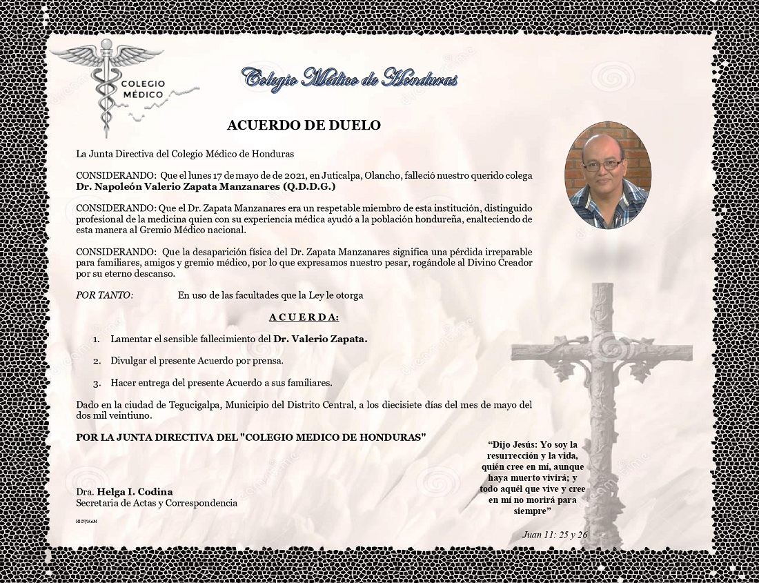 Obituario Dr. Napoleón Valerio Zapata Manzanares (Q.D.D.G.)