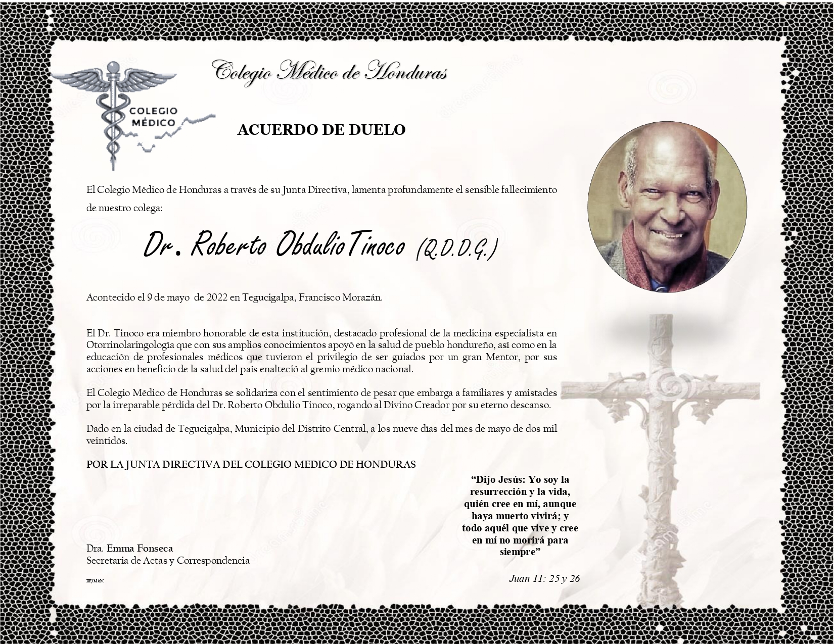 Obituario Dr. Roberto Obdulio Tinoco (Q.D.D.G.)