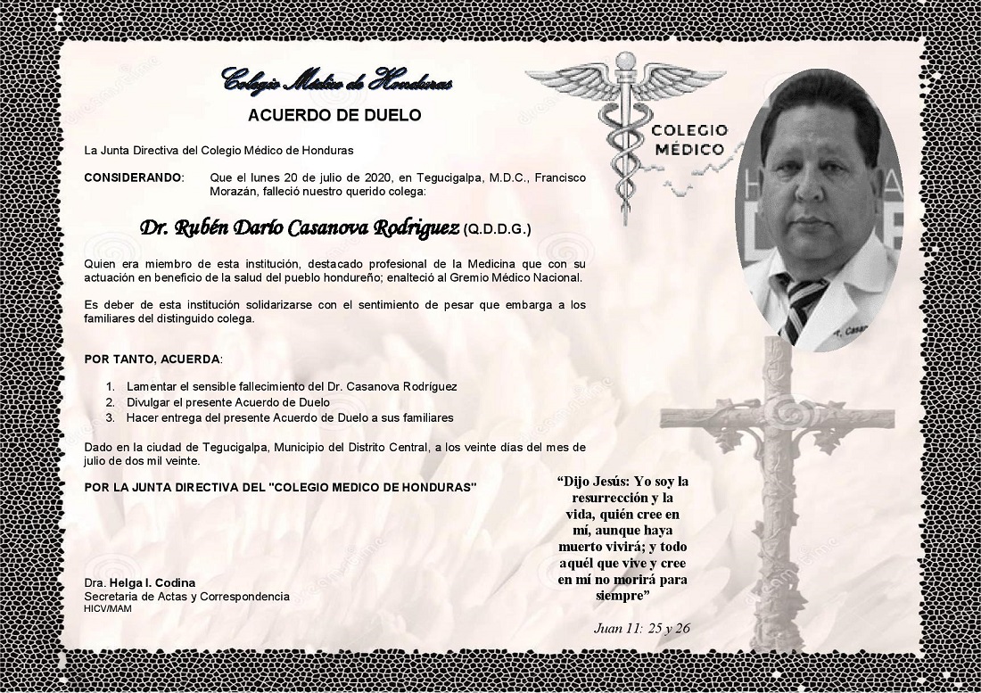 Obituario Dr. Rubén Darío Casanova Rodríguez