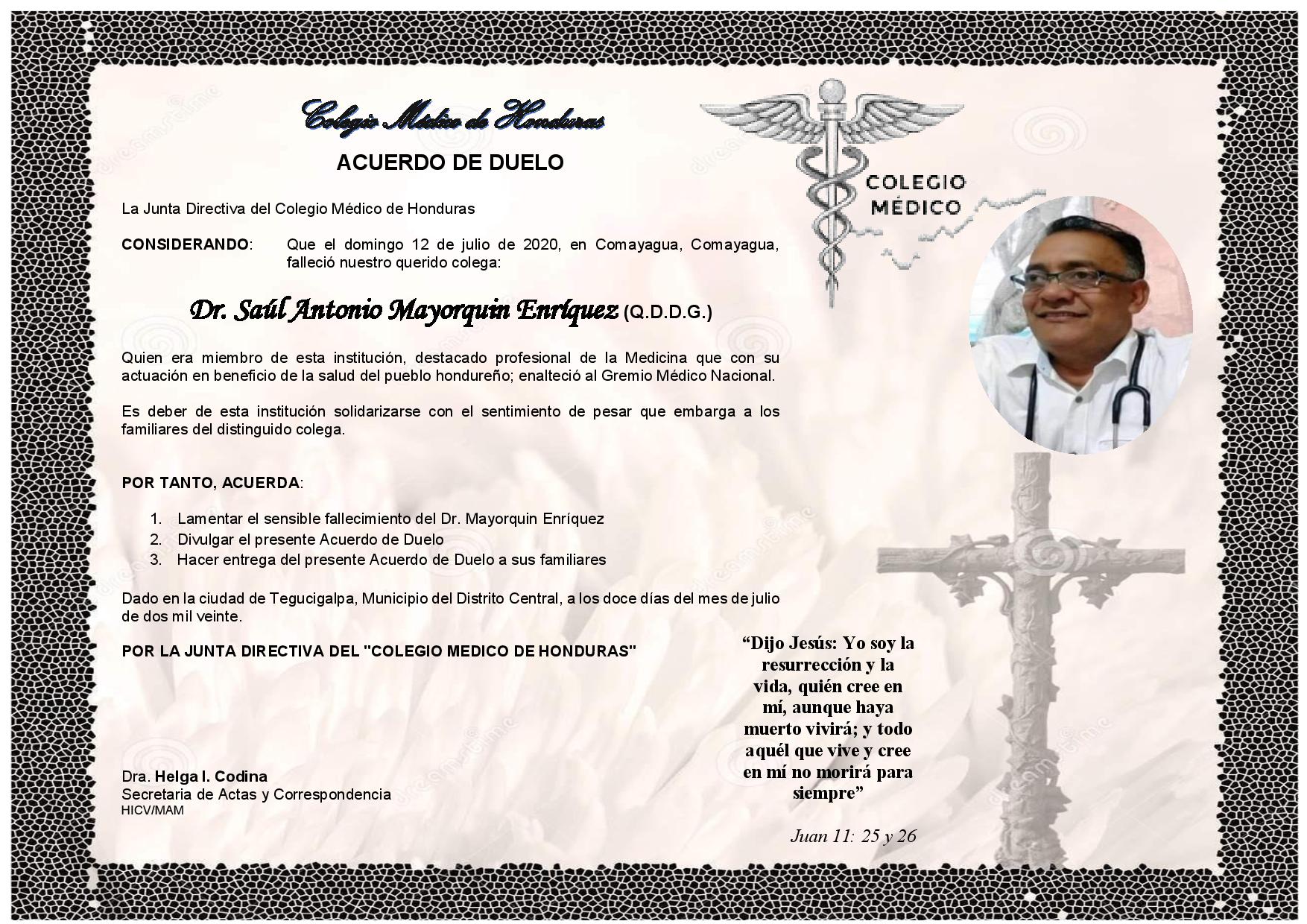 Obituario Dr. Saúl Antonio Mayorquin Enríquez