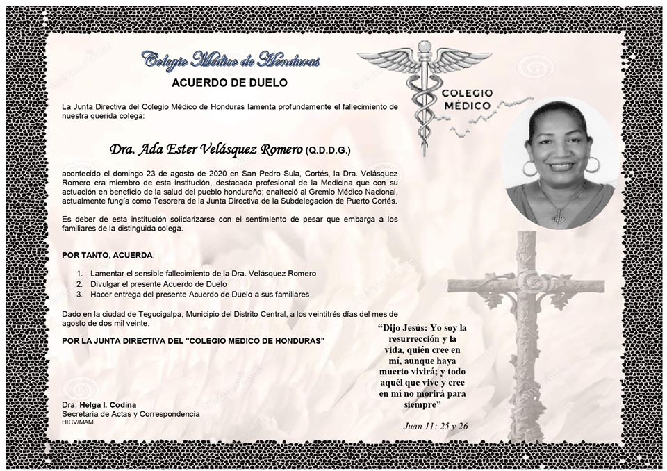 Obituario Dra. Ada Ester Velásquez Romero (Q.D.D.G.)