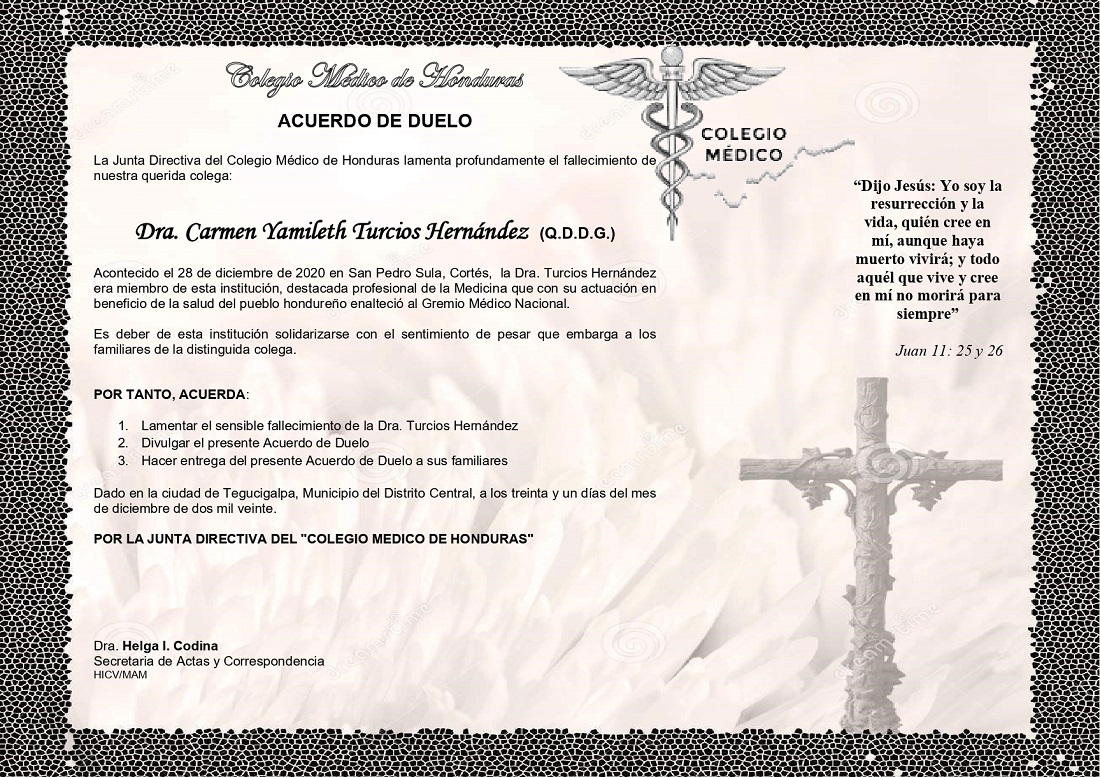 Obituario Dra. Carmen Yamileth Turcios Hernández (Q.D.D.G.)