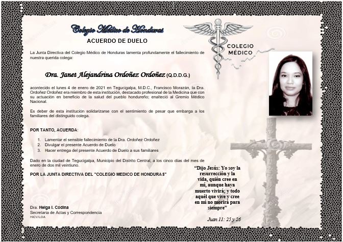 Obituario Dra. Janet Alejandrina Ordoñez Ordoñez (Q. D. D. G.)