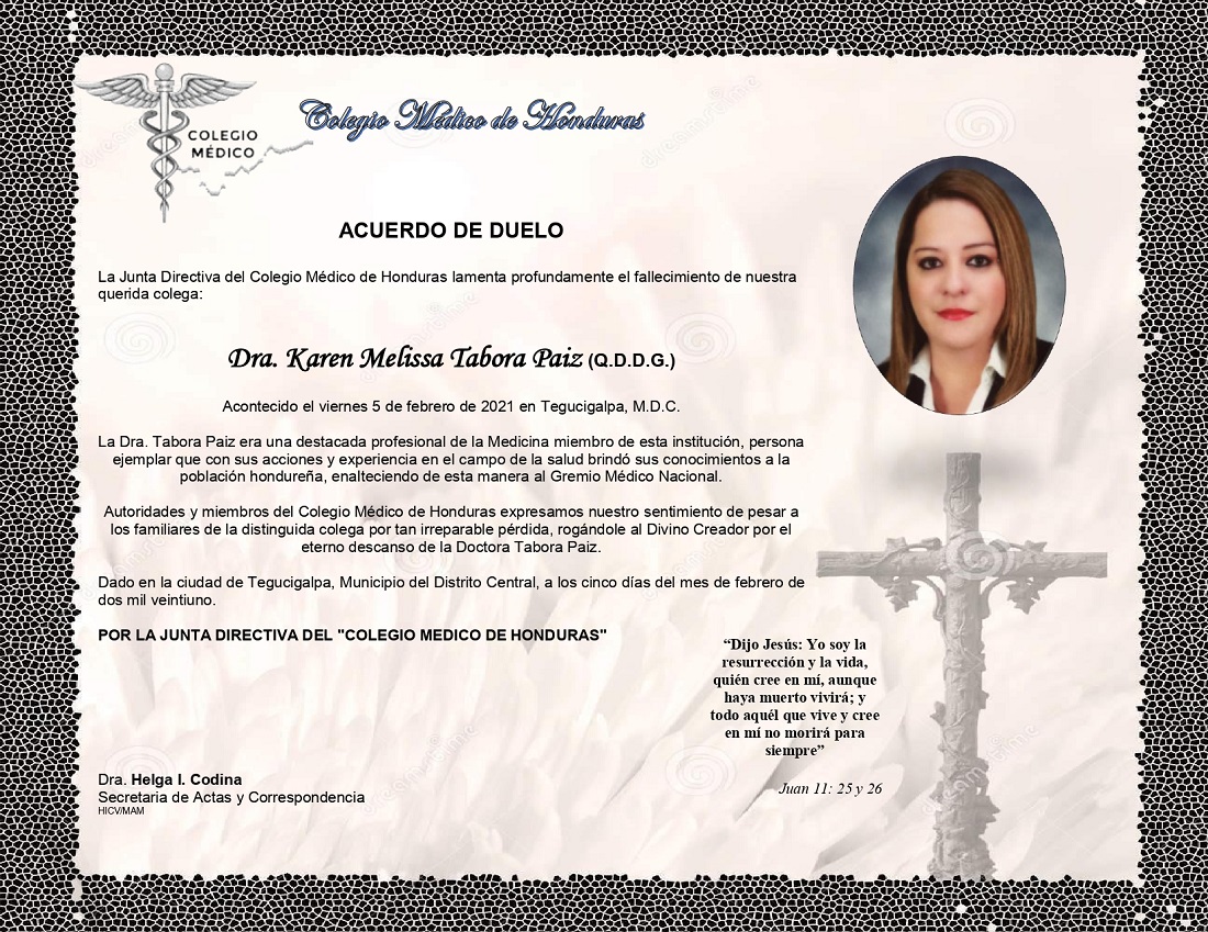 Obituario Dra. Karen Melissa Tabora Paiz (Q.D.D.G.)