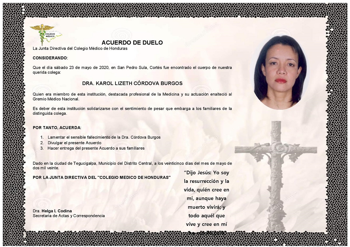 Obituario Dra. Karol Lizeth Córdova Burgos