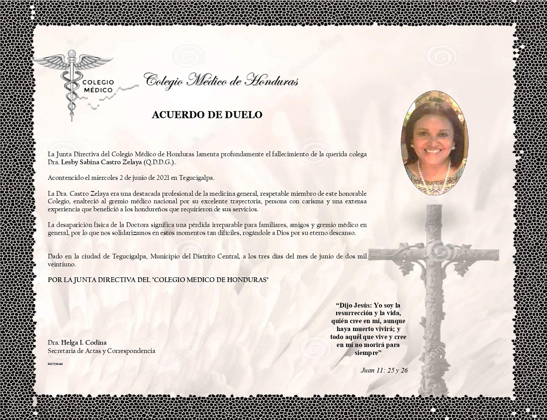 Obituario Dra. Lesby Sabina Castro Zelaya (Q.D.D.G.)