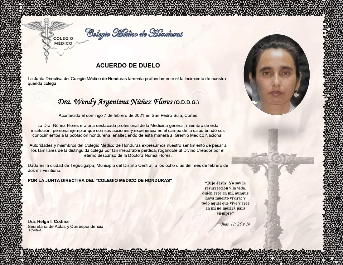 Obituario Dra. Wendy Argentina Núñez Flores (Q.D.D.G.)