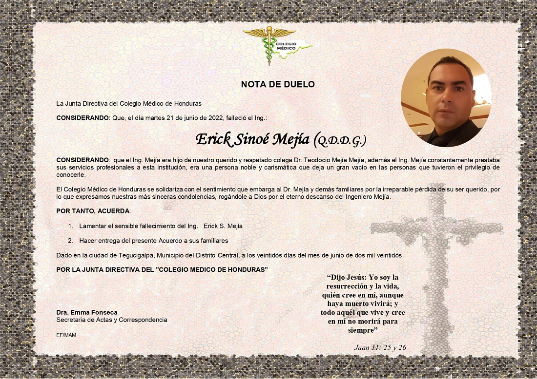 Obituario Ing. Erick Mejía