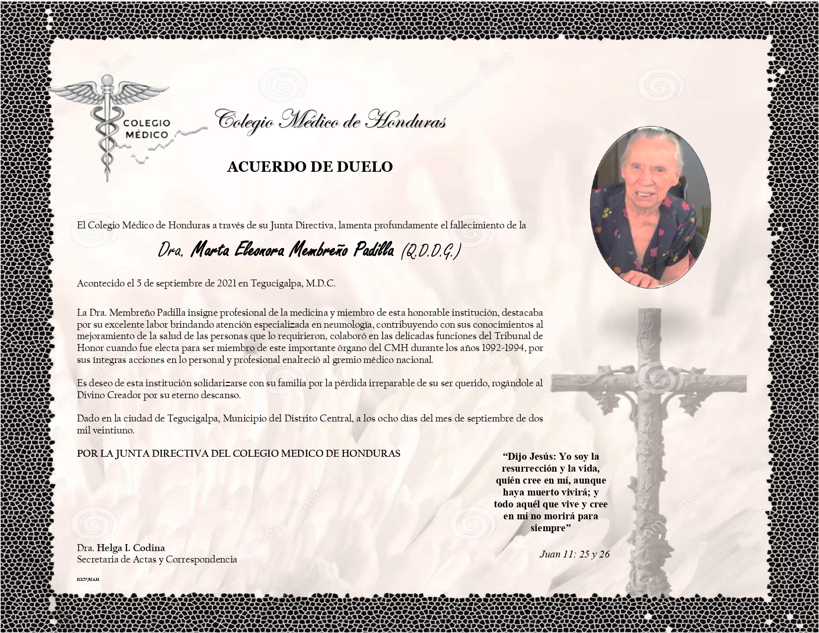 Obituario Dra. Marta Eleonora Membreño Padilla (Q.D.D.G)