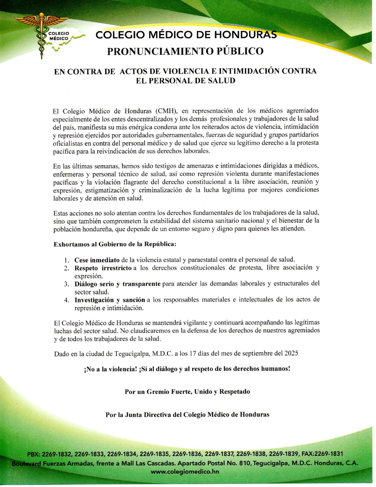 PRONUNCIAMIENTO PÚBLICO
